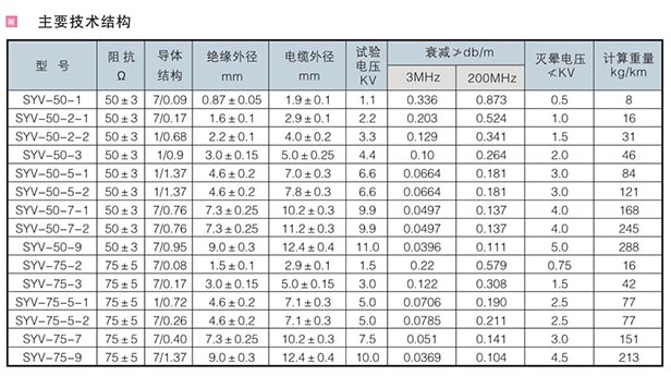 射頻同軸電纜產品技術參數